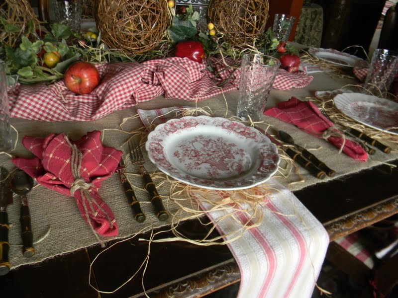 ReplyDeleteLove this table Nancy! The checked fabric and red tranfer ware dishes are just perfect! Found a few more pieces of transfer ware for my little collection!