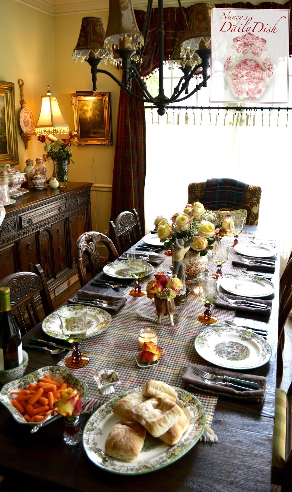 Lovely! Those beautiful roses accent your table perfectly. And those dishes are exquisite!